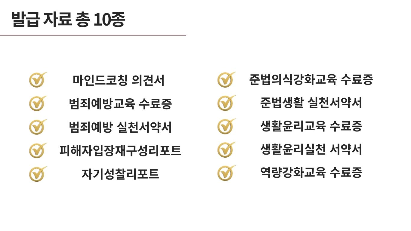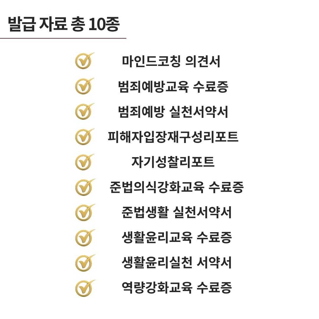 ✅ 당일 수료증 및 양형자료 즉시 발급 ✅ 법원 제출용 양형자료 총 10종 제공 ✅ PC·모바일로 24시간 언제든 수강 가능